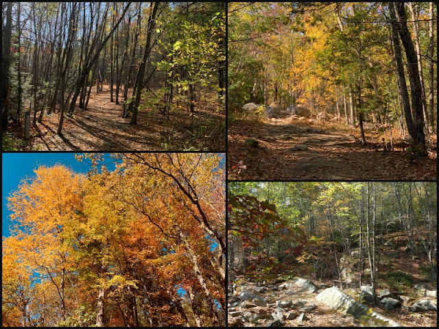 Arriving for our weekday late morning visit, the lower parking lot was nearly full, luckily an earlier visitor was just driving out. We noticed an equal number of NH and MA license plates; the park is close to the border of both these states. It was very easy to enjoy a socially distanced outdoors adventure. Visitors were requested to keep 6 feet distance between those not in their group and to wear masks, if this wasn't possible. While visitors were walking the trails, it was a rather silent environment. Taking time to rest on one of the well-placed stone benches, we chatted with a few visitors who were doing the same.